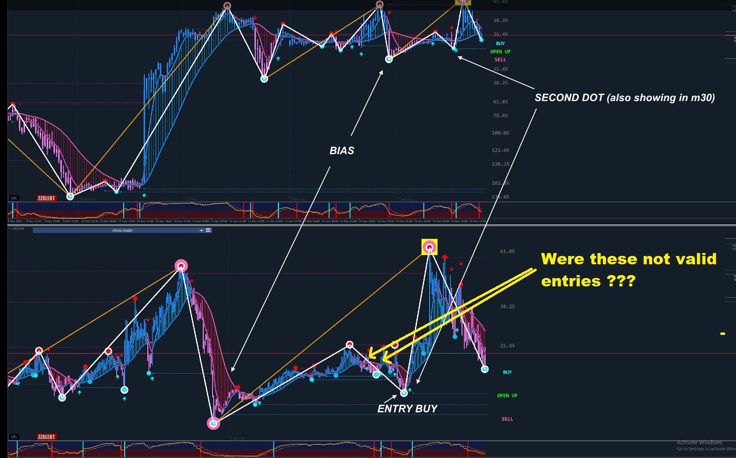 -Lets assume if they were valid entries, and if one took a trade here at any of these blue candles, would it be a losing trade?