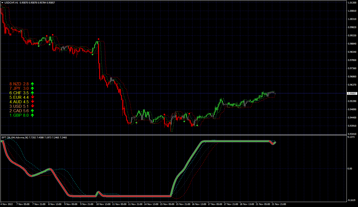 This is an Ehler's fisher transform using macd in its price calculations. The macd and the bands are using the newest updated averages for its calculations. Just for clarification the chart is using ptl candles and arrows.
