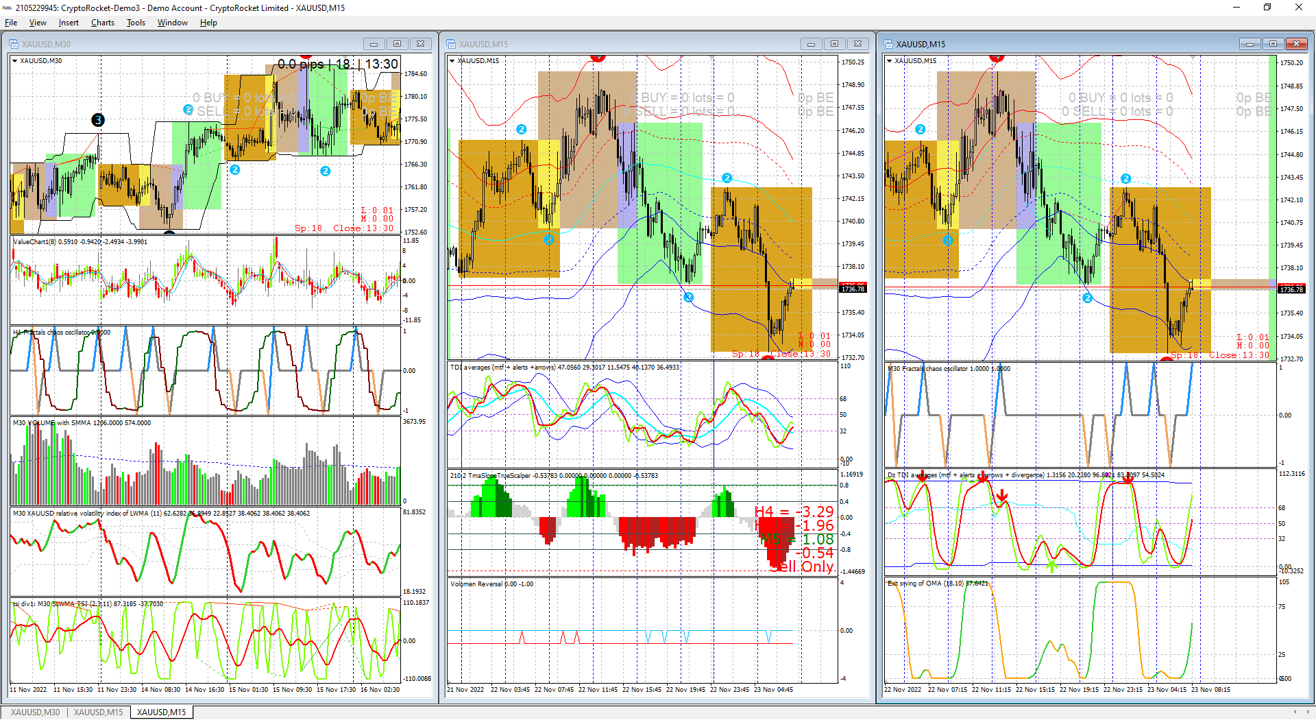 Please note about the timelines indicator: I included 2 versions of it, the default one is for gold and the timelines_majors is for all other instruments. Gold starts one hour later so I had to correct how it indicated (h4 tf).