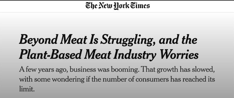 'Meat substitute catastrophe is finally getting the attention of mainstream media. They have pivoted from 'will replace 30% of meat' to recognising it's a no-growth niche. It is becoming one of the biggest failures in food industry history: '