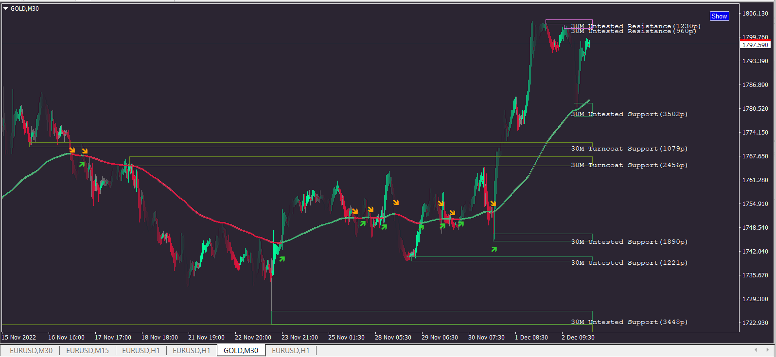 This remaind me one old indicator, pm request. SR indicator enhanced with APB candles and SSL with RSI filtering.Sepo wrote: Sun Dec 04, 2022 11:54 pm Not forgeting that super signals repaint and that areas of supply and demad are not concrete walls lol.