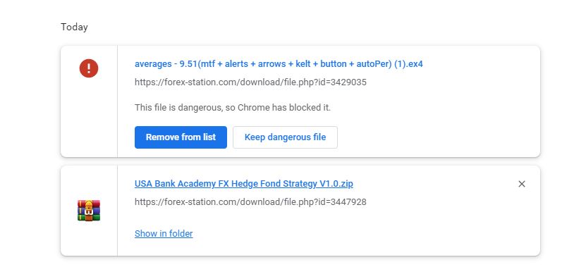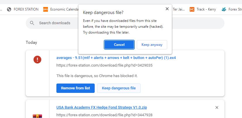 2. A list pops up showing the refusal of Chrome to download the file...Click "Keep dangerous file"