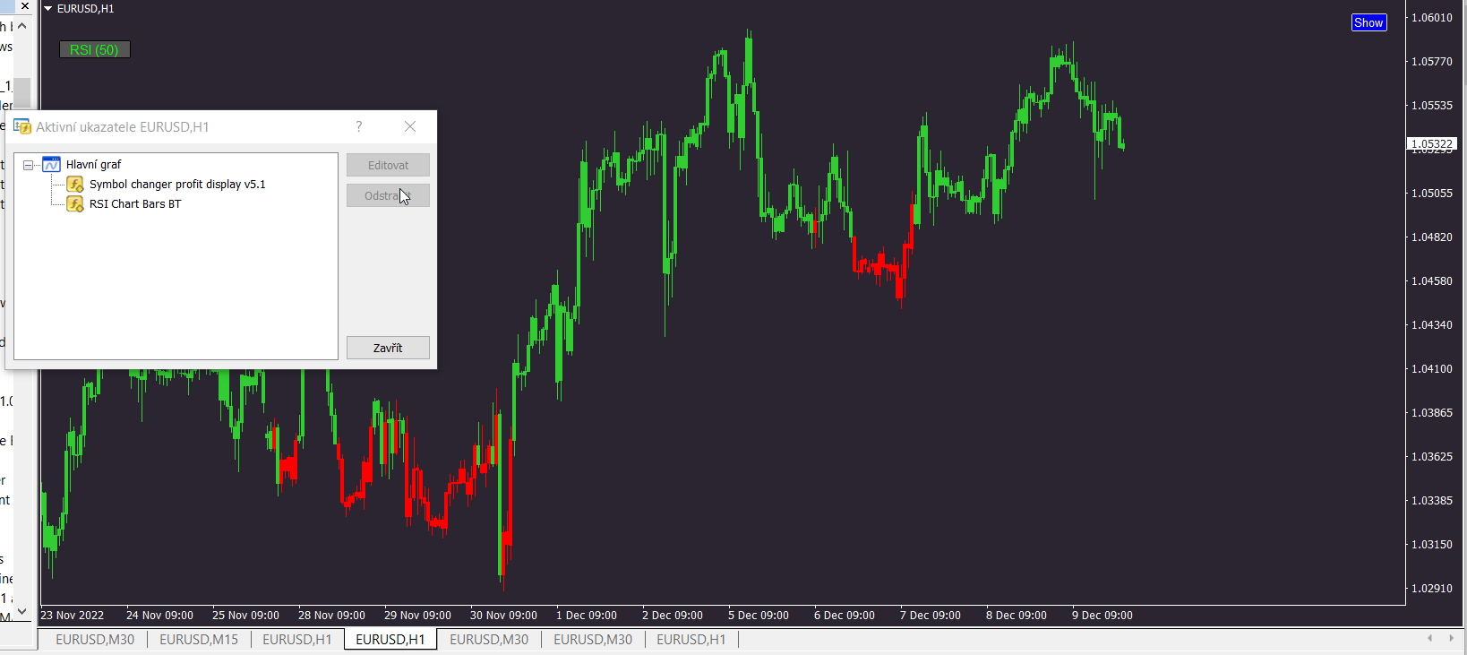 1- This is what I show when attach indicator.....Show two colors....A_5 wrote: Mon Dec 12, 2022 6:55 am 1. RSI Chart Bars BT.mq4This displays just red colour on the chart. if possible, correct this display error please