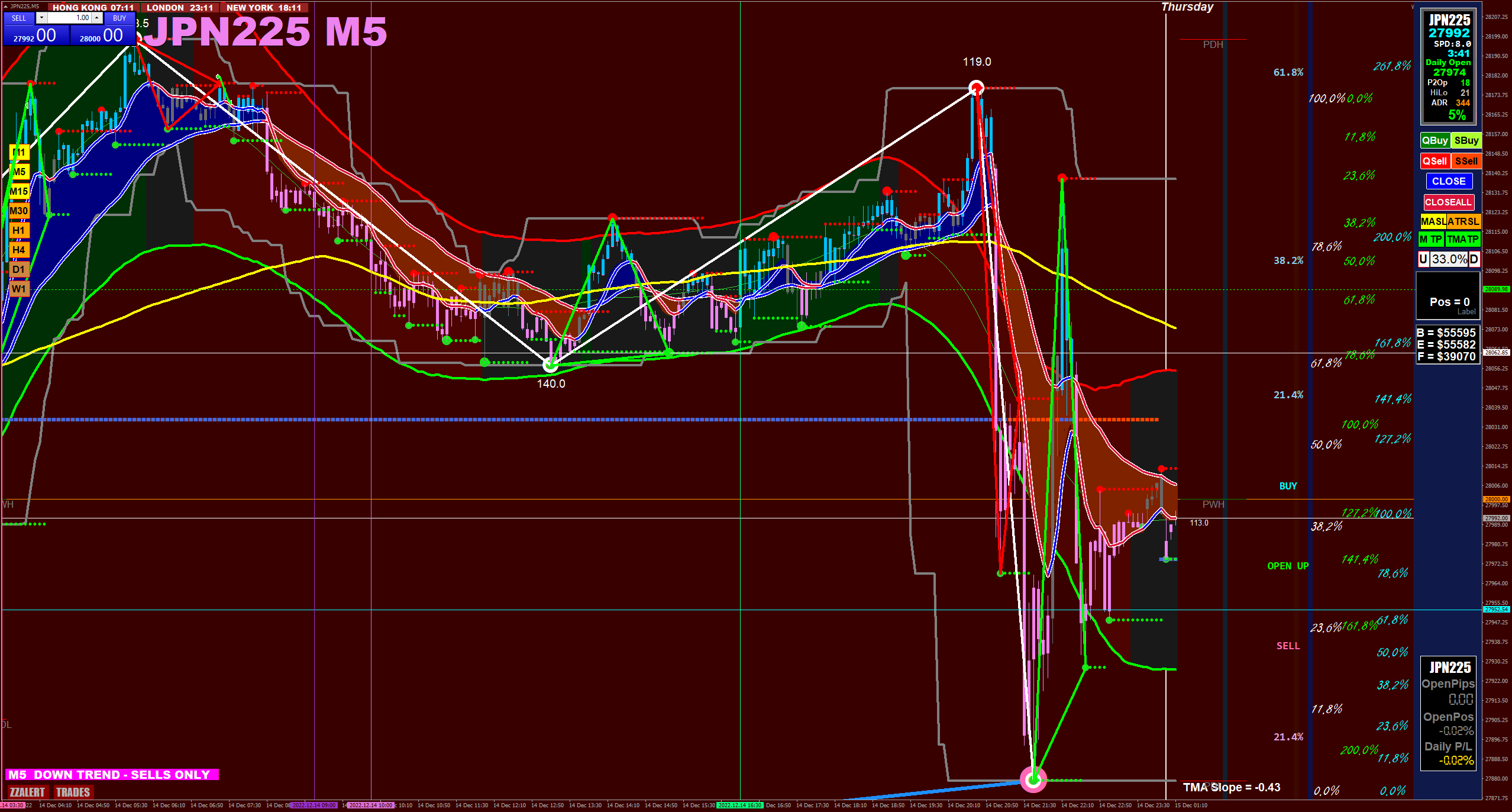 This is an update of my EA to version 50.50. The main change is the Maximum Spread setting, if the spread is higher than the number set it will not open a trade and the chart background will change to red. This has no effect on closing trades. The default is 6.0, JPN225 spread was 8 at the time of taking the screenshot.