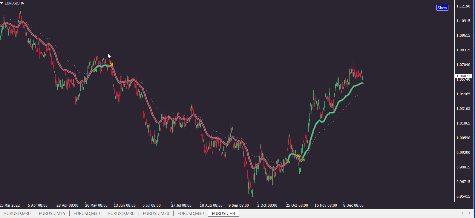 eAverages ribbon. Classic cross ribbon of average with mtf, alerts and arrows.