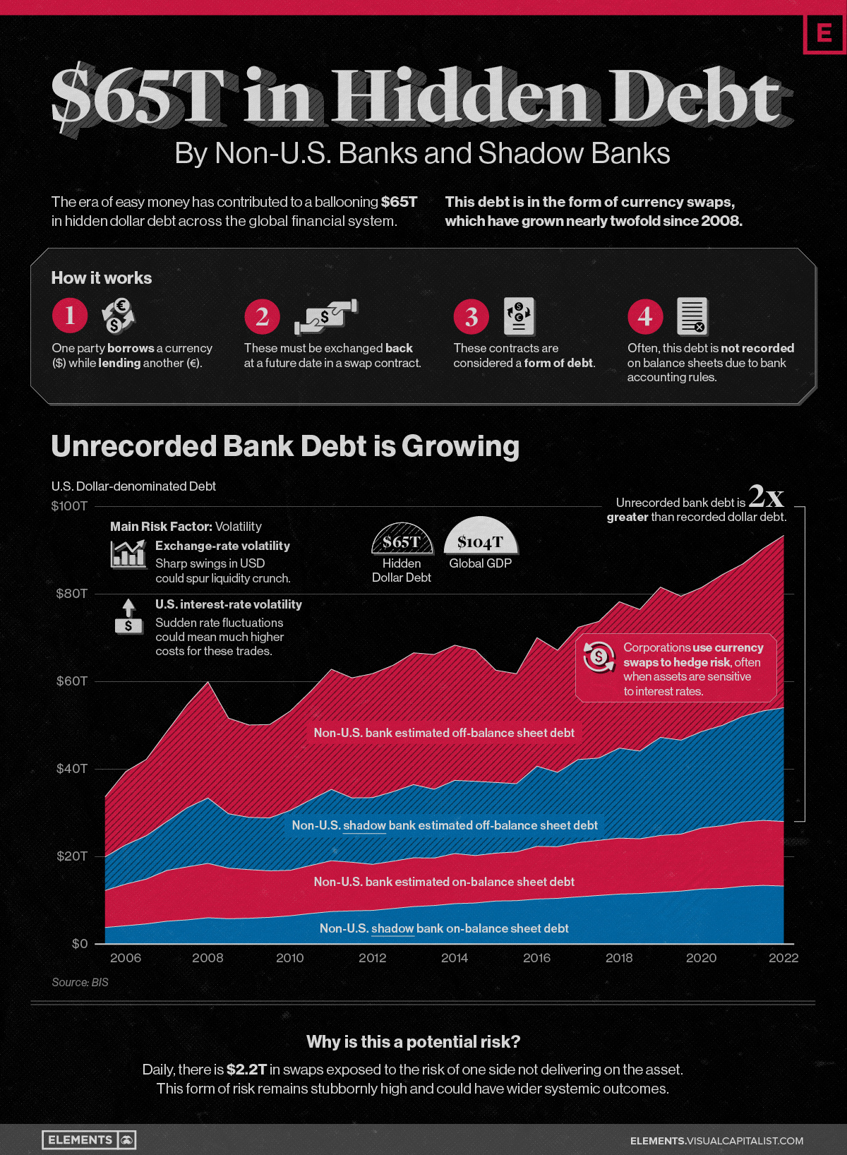 Based on analysis from the Bank of International Settlements (BIS), the above infographic charts the rise in hidden dollar debt across non-U.S. financial institutions and examines the wider implications of its growth.