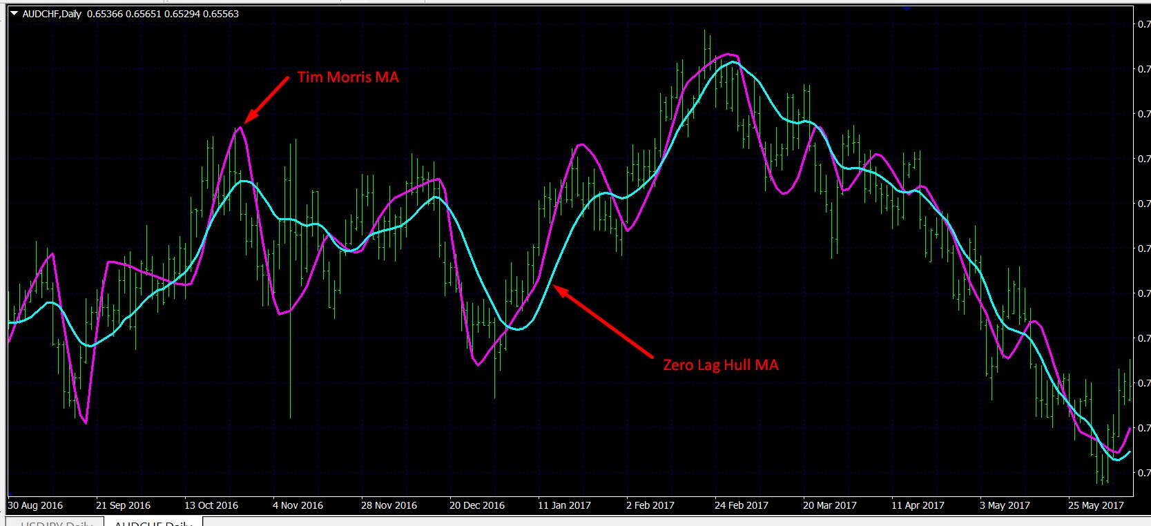 Below are the comparisons I made recently with the Zero Lag Hull MA you released. Both compared with values of 34 (TMMA don't have periods, so i set the driving coefficient to 34).