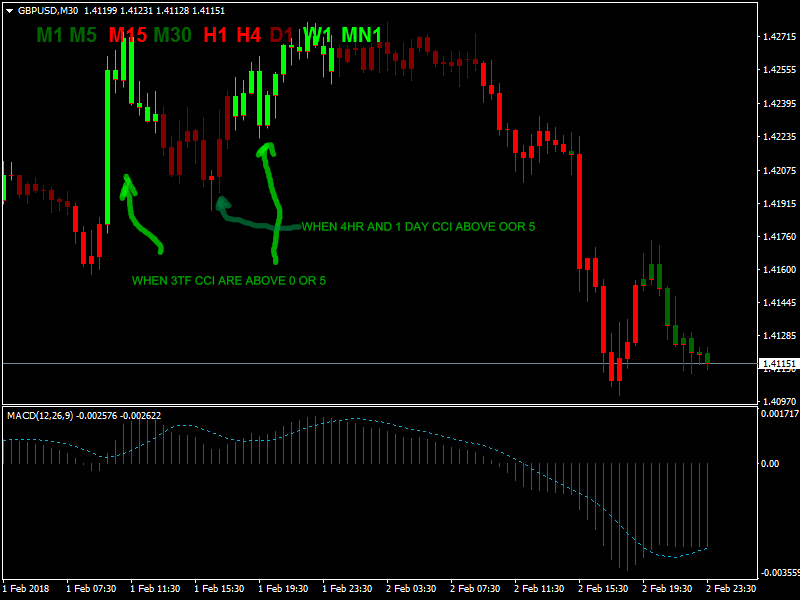 So when all 3 TF are up, lets say LIME GREEN,, and if its just 4hr and 1 day CCI, have them on GREEN, so we can still decide to stay on the trend, move stop loss etc,