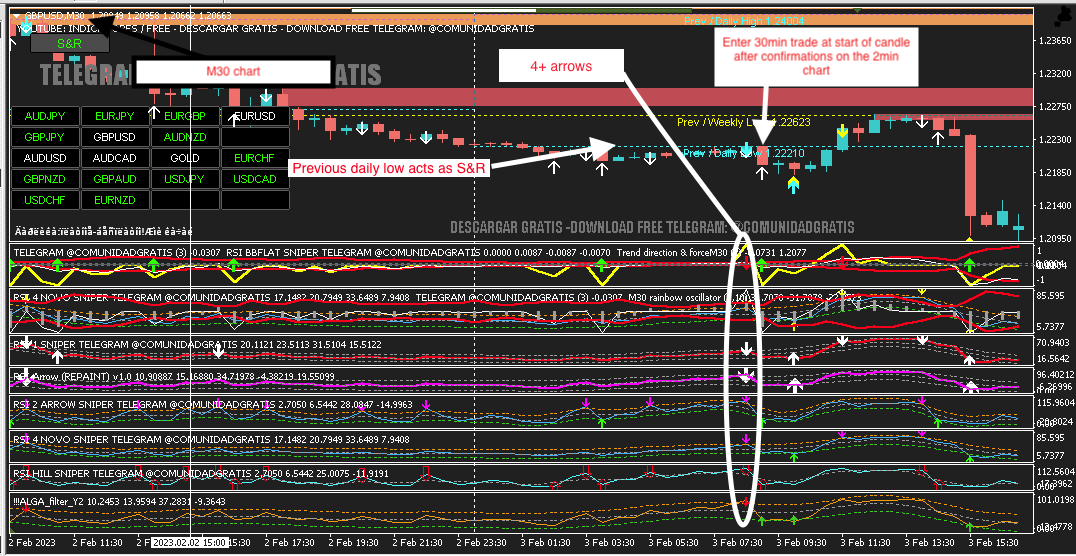 2. I look at indicators which are mostly based on RSI to give an arrow signal,,there are about 7 of the indicators and I only consider a signal if it has 4 or more arrows