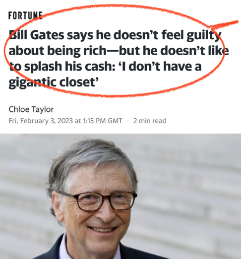 BILL GATES - Doesn’t feel rich because he doesn’t buy lots of clothes. He buys these Net Zero items instead.