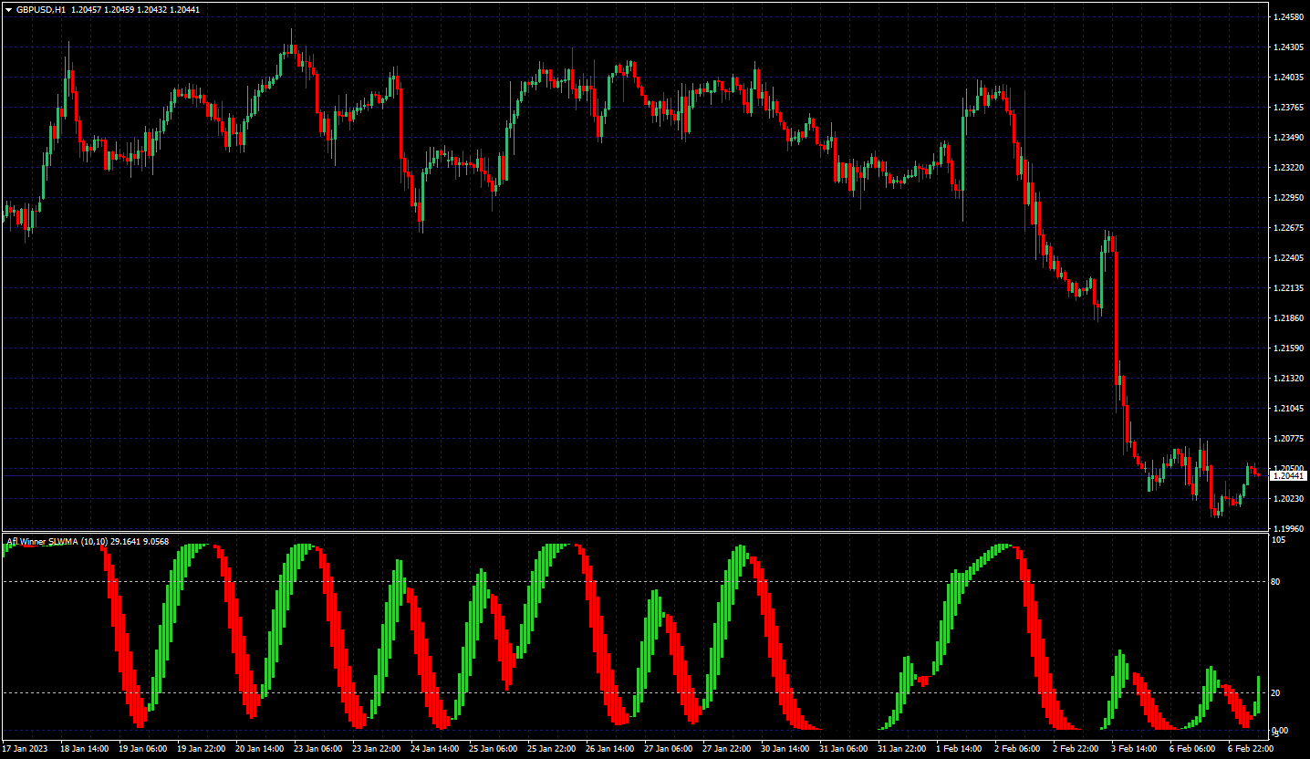 It's intended for intraday trading (timeframes below the Daily chart) as a reversal indicator, similar to the display of a Stochastic but using a different formula.