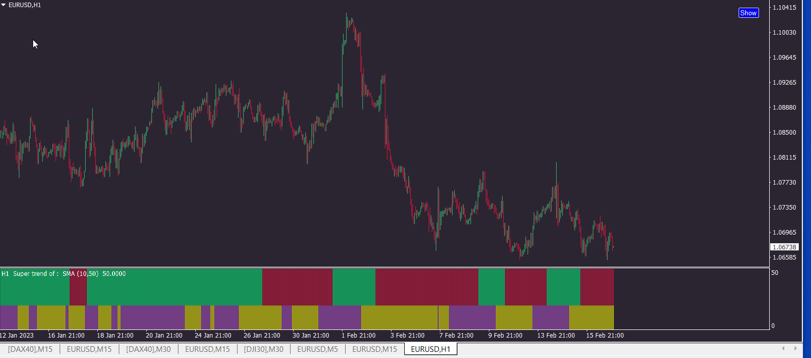 This Histogram version of Supertrend can be dragged into another indicator's subwindow and used as a separate "dual display" indicator for trend confirmation and so forth. For the accompanying "Chart" version please see here.
