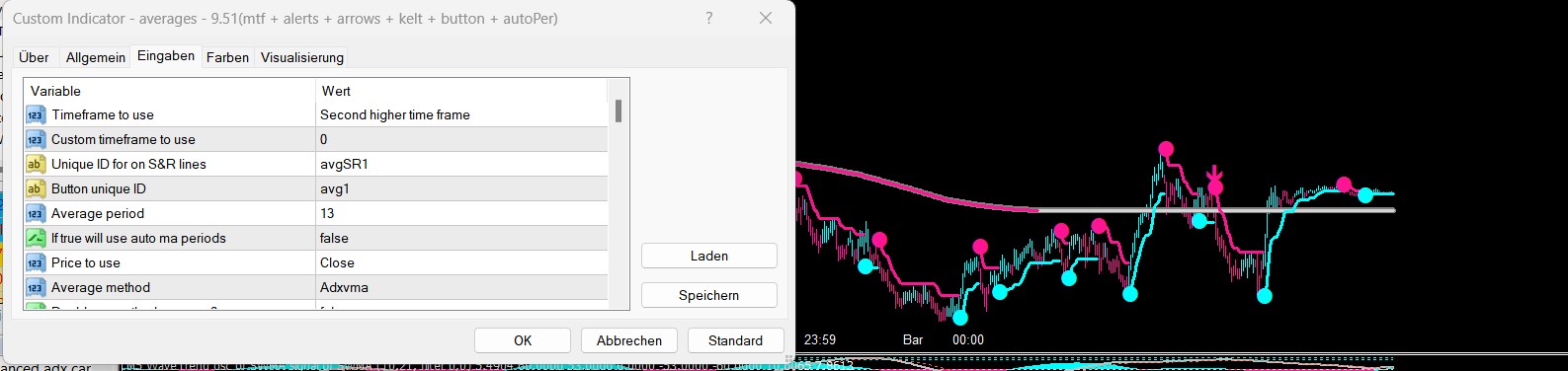 I use the ADXvma as a sideways filter, even though it is certainly not perfect, it is the only thing that works for me to avoid entering further trades in ranging markets. Disadvantage is that you have to make a compromise between fast in the trade when the sideways phase ends and to filter as well as possible, when you should leave the fingers out of the market. I use the Averages here with these settings. However, is also only the 1mionone wrote: Sun Jan 29, 2023 7:35 pm I've tried all the methods listed on various sites