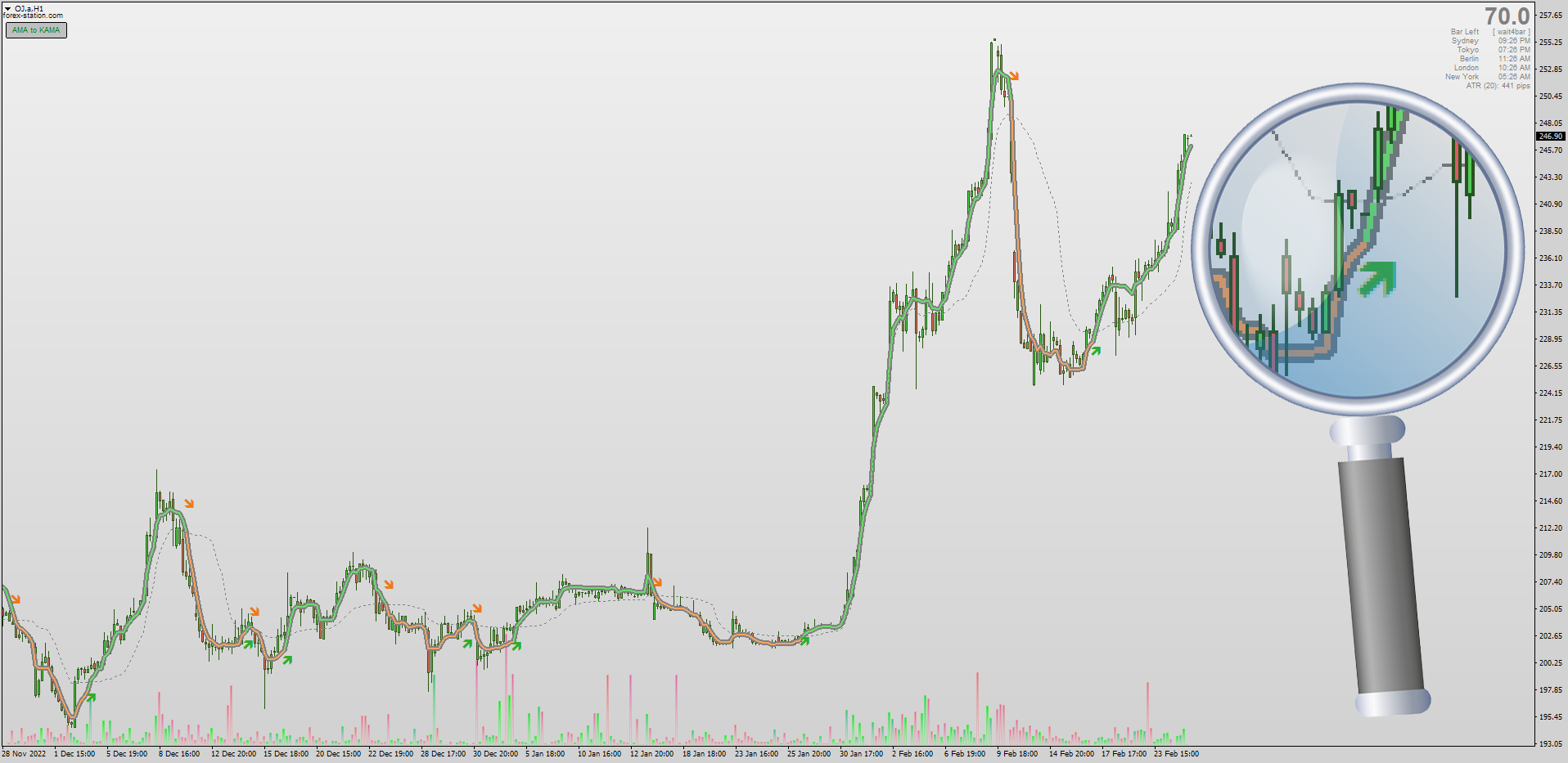 Mladen's AMA to KAMA (Adaptive MA to Kaufman MA) Crossover was created using V. Apirine's method which described combining these 2 x indicators to reduce whipsaws & false entries. Thanks to Moderator Kvak, this code setup is now available for MT4, here: viewtopic.php?p=1295504547#p1295504547