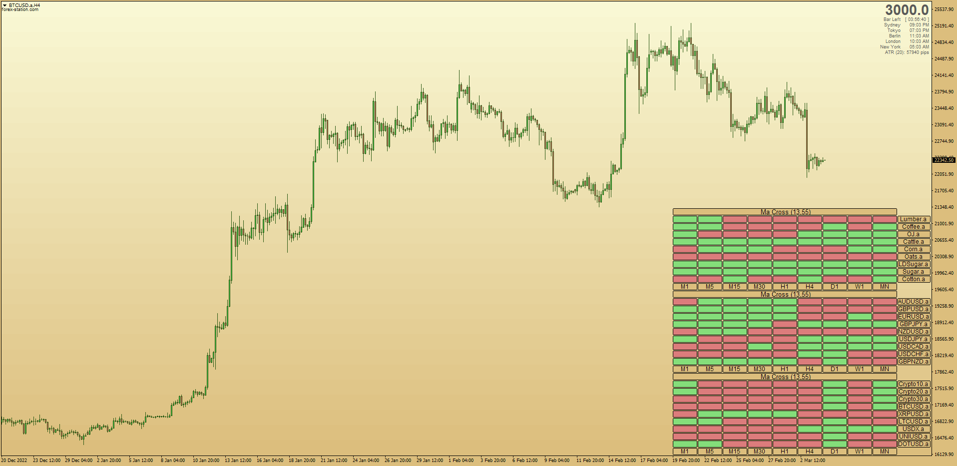 If you're looking for the best, multi-symbol & timeframe dashboard for displaying Moving Averages & Crosses, look no further than Mrtools & Mladen's on-chart "heatmap" with clickable timeframes, symbols & brand new user-friendly options menus for 2023: viewtopic.php?p=1295505009#p1295505009