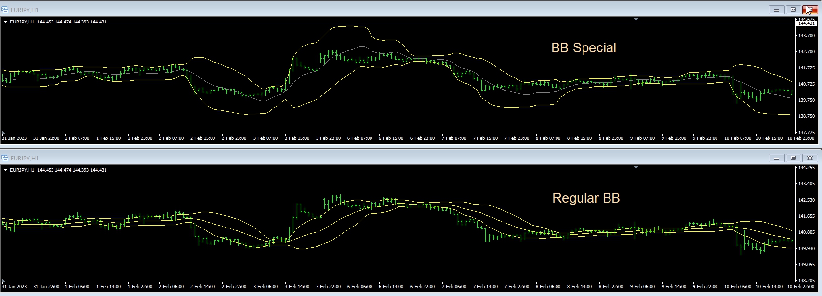 it reacts earlier at an uptrend but keeps tight in ranges periods
