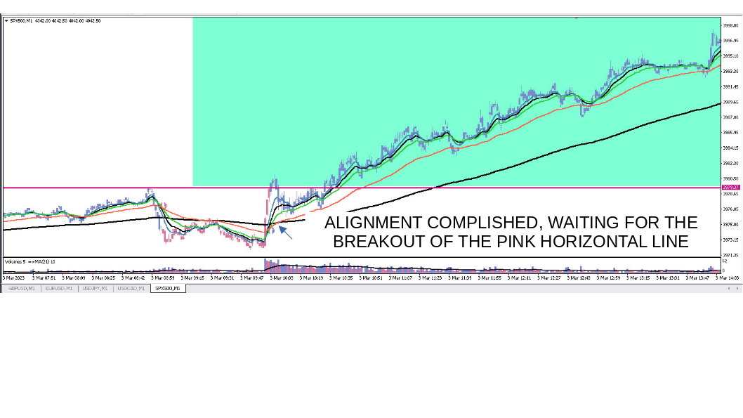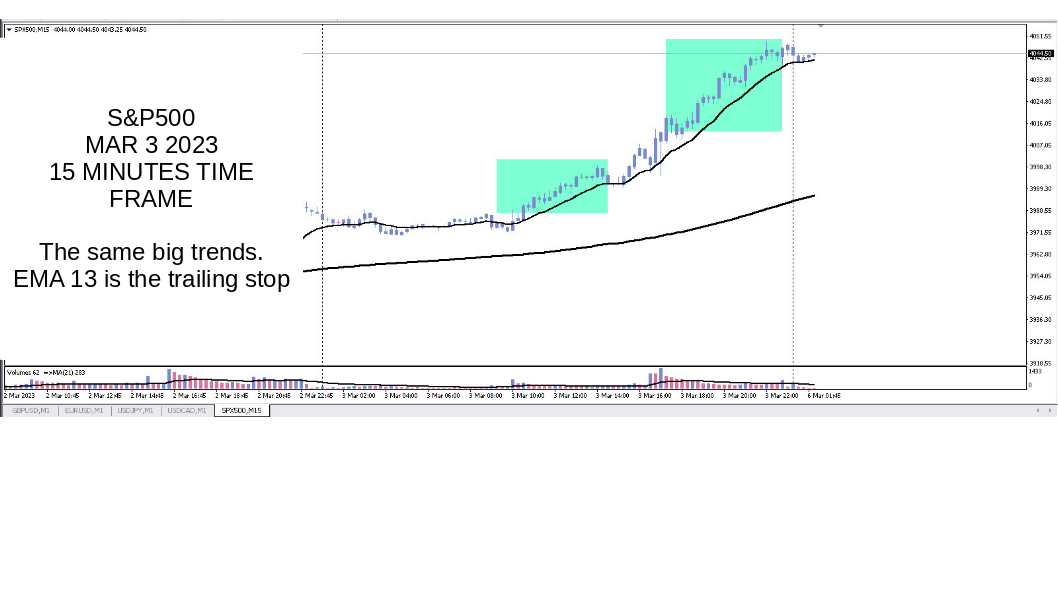 Here you'll see them on M1 and M15. You'll understand how come the EMA 13 (M15) and EMA 200 (M1) are the same (you already know I guess)