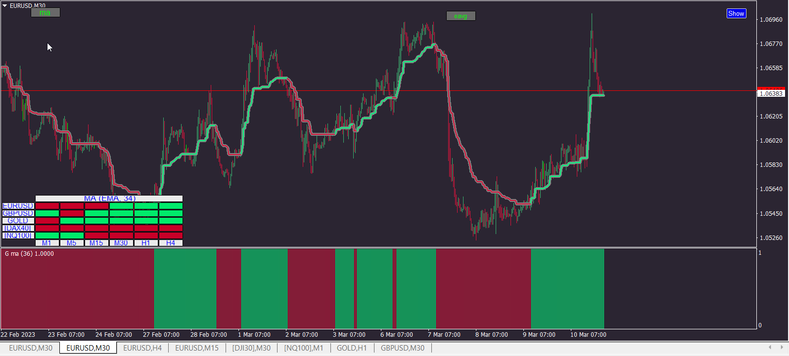 This indicator use icustom call, note that if you have lot of pairs or timeframe is possibly slowdown terminal.