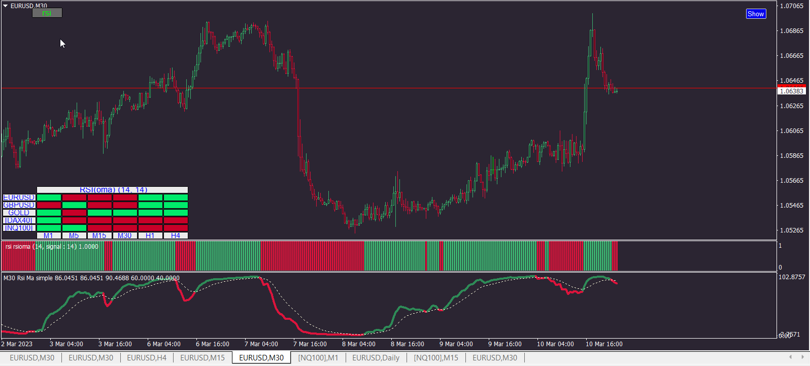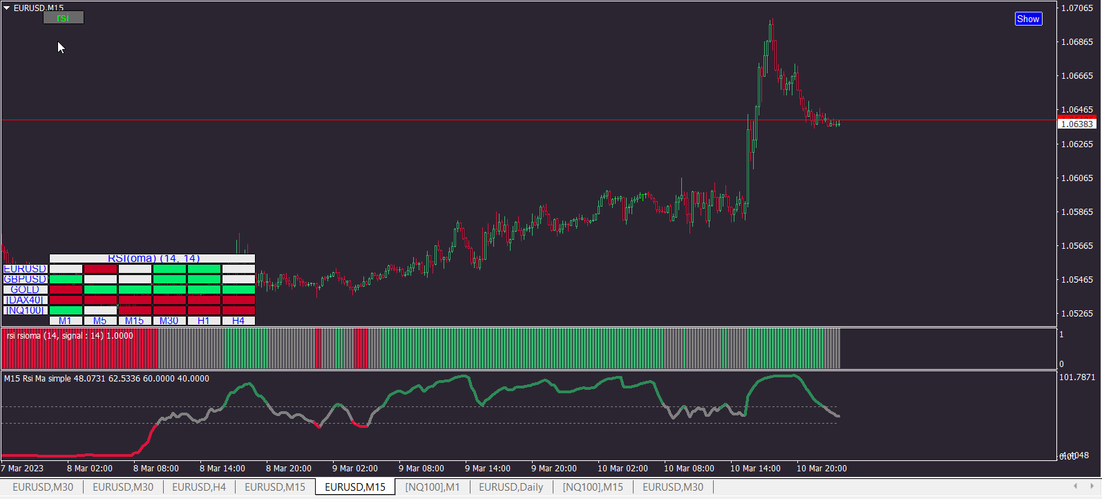 I already did it some time ago, but not posted, you can test it.Lightningstorm7 wrote: Mon Mar 13, 2023 3:42 am Greetings MrTools, my last post was deleted possibly because i have been inactive/ away from my computer for some days i apologize for the late reply if you did respond to my last request. But is it possible for you to create a MTF heatmap based on the crossing of the rsi moving average of this indicator. When the rsi crosses below the Average period it turns red and when the rsi crosses above the Average period it turns green? Would be appreciated if so!