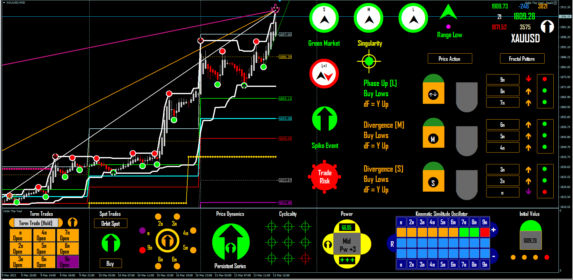 PS: Elsewhere we said green is begin of rally and Orange or Gold intensification look at Gold almost 4000 points on the day and all you had to do was to read the distribution of the KSO. Of course we talked about price cascades already and as you can see the order of bars is unchanged. Not to forget the inverse is true.