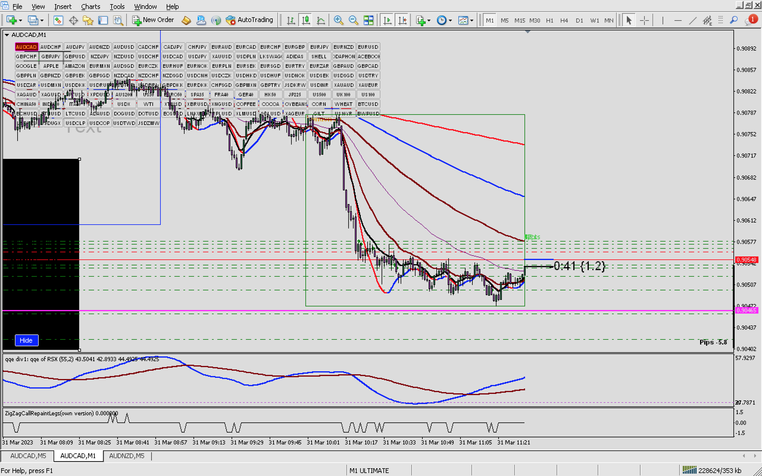 It will be hard day ,as I was -5 pips loss when price reach ema 9 -5 min tf I wanted to be in the profit, and fall down -30p dd ,but I activated ema 20 -5min tf target and leave it ,so exited with the small profit as I build more and more lots size,but better to just cut all when price reach ema 9 -5min tf.