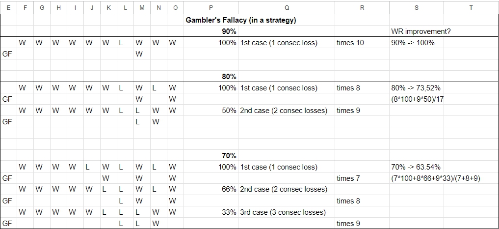 so the "Gambler's fallacy" is NOT true for strategies, it depends on more than that