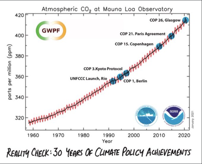 Three decades worth of climate agreements have made absolutely ZERO difference to atmospheric CO2.