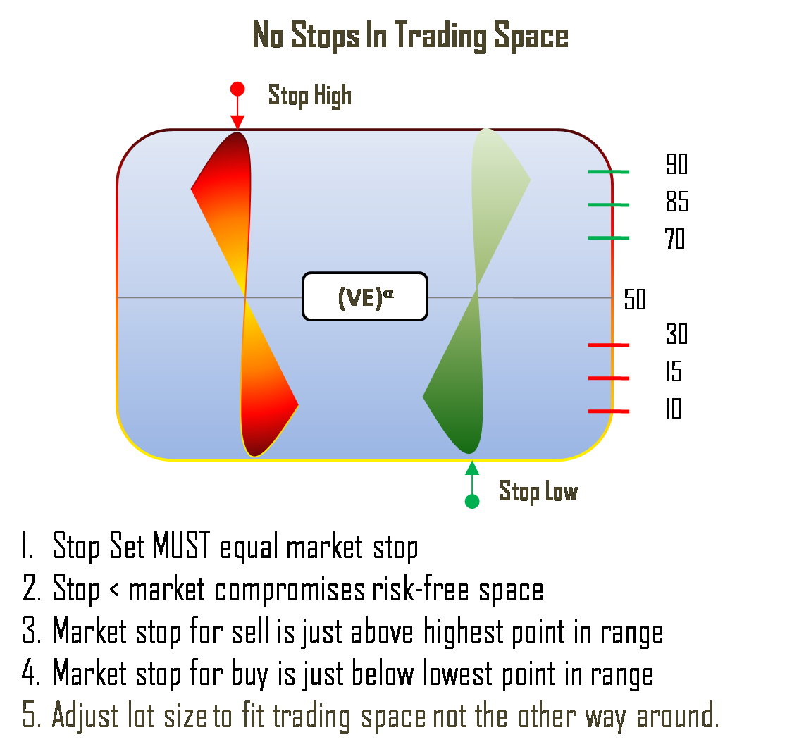 In this post viewtopic.php?p=1295509456#p1295509456 we showed you Inverse On entries to use in risk-free trades and I said no rules just behaviours. Well as a result of price behaviour - there is something close to a rule I should mention - YOU CANNOT HAVE STOP LOSS IN TRADING SPACE. Placing stop loss within range can easily compromise risk-free space. Appreciate that you can have fluctuants (e.g. topological mixing), arising from all sorts of sources including so-called news etc and placing stop loss within the range defined as trading space on deploying any of the Inverse On entries here viewtopic.php?p=1295509456#p1295509456 introduces risk into that space. So please use diagram below (which some may view as more or less the same as having no stop loss but it is not). I have been thinking how to say this without an outcry and confusion given there is still not widespread understanding of the underpinning concepts by which Orbit the Tool reads the market. This principle was applied in my btc trade last weekend and anyone who followed that trade would have observed how many times price came towards my stop but never violating it because I followed this "rule." Another equally critical "rule" if you can call it a rule - is that the set of cues you elect to use among the set of Inverse On entries given must indicate in FLE to qualify. Meeting cues and entering trades in a mature trajectory (i.e. long after the train has left the station), can bring you grief without Orbit being wrong in any sense.