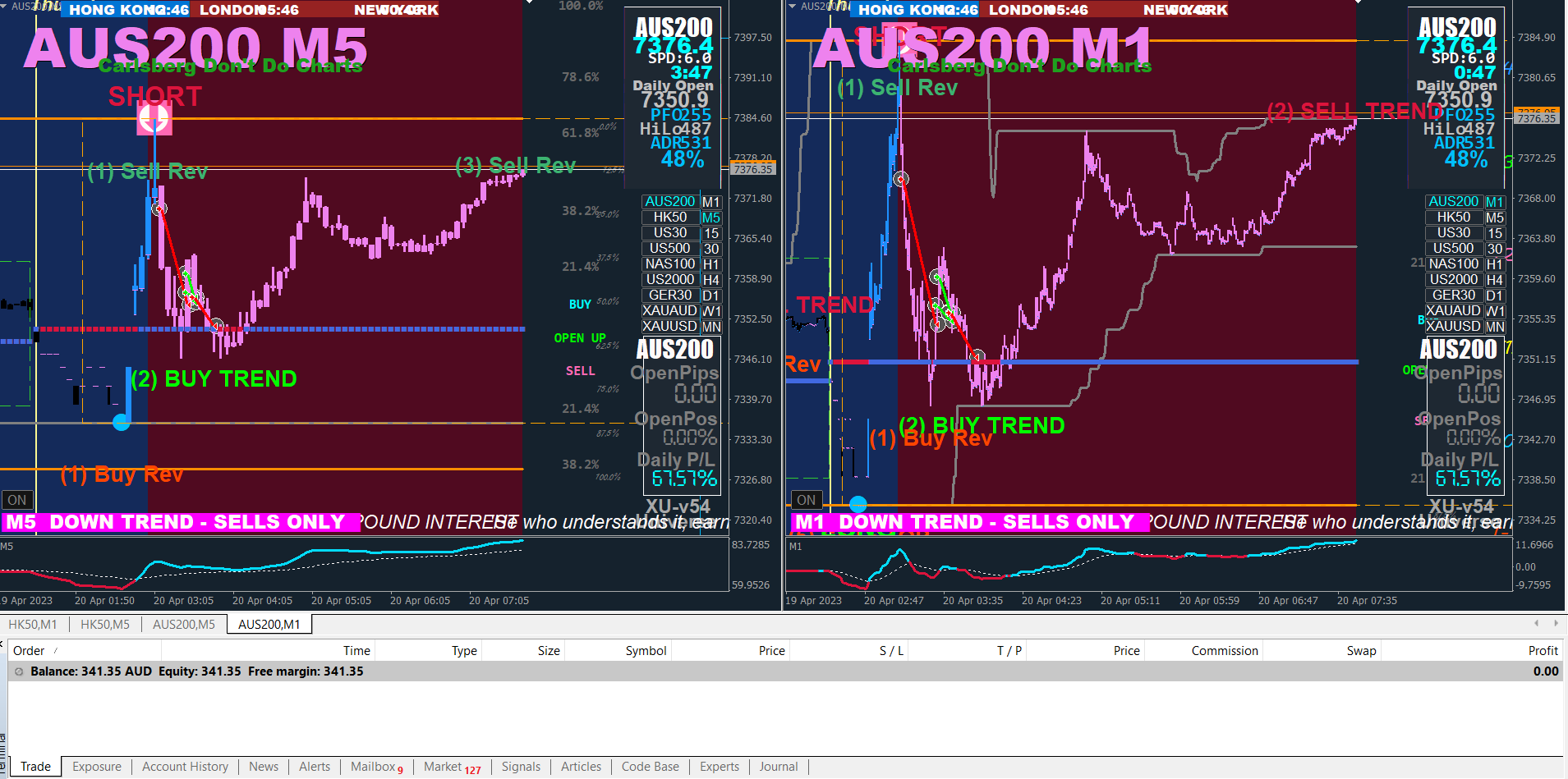 Micro demo account on AUS200 and HK50 this morning. I can't see how else to trade HK50 at the open but with M5 vs M1, sorry xard777 Sensei.