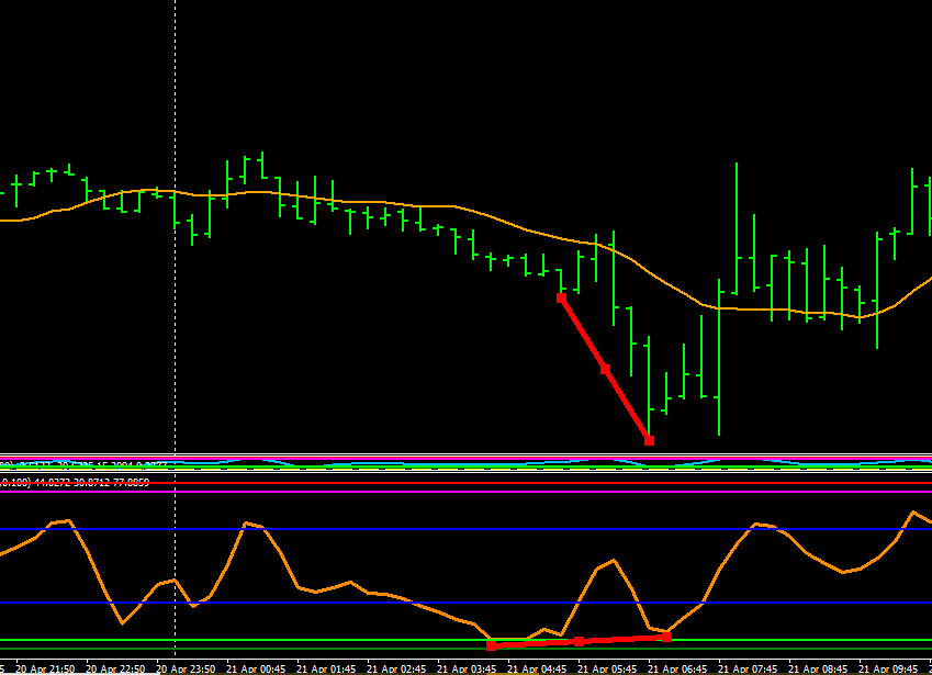 1) Optimal divergence occurs when the RSI3 indicator line is below extreme levels