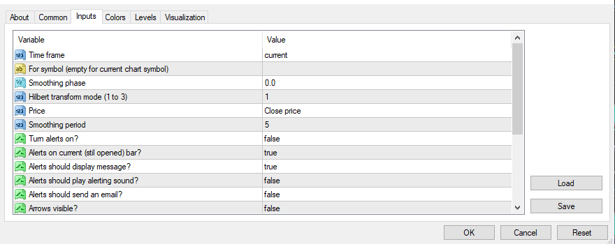 However, in the settings screenshot above of the adaptive Gann High-Low activator jma Heiken Ashi arrows - histo (for symbol) nmc 1.01.mq4 indicator there are the options, Smoothing phase and the Hilbert transform mode (1 to 3). Can anyone explain what these options mean so we can know what is a good value to use for the Smoothing phase and what each Hilbert Transform mode from 1 to 3 means? Otherwise, if there is a document that explains all this, then please point us to it. Thanks.