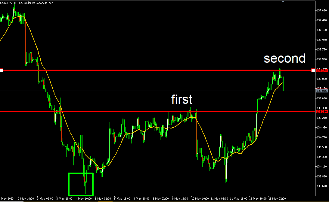 USDJPY 1H chart and second level of resistance calculated from low