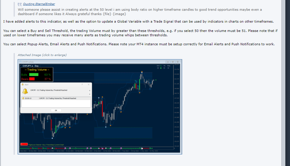 andrei-1 wrote: Tue May 16, 2023 4:08 am Again, corrections in the signal. There is an uncomfortable situation. The transition through 50 often occurs on the first ticks of the bar. It honks once on one bar. If you need more signals, you need to restart* it (click OK).