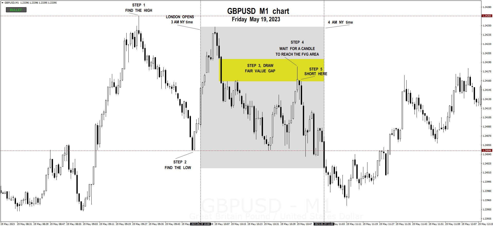 One example of GBPUSD, May 19, 2023, Silver Bullet trading strategy