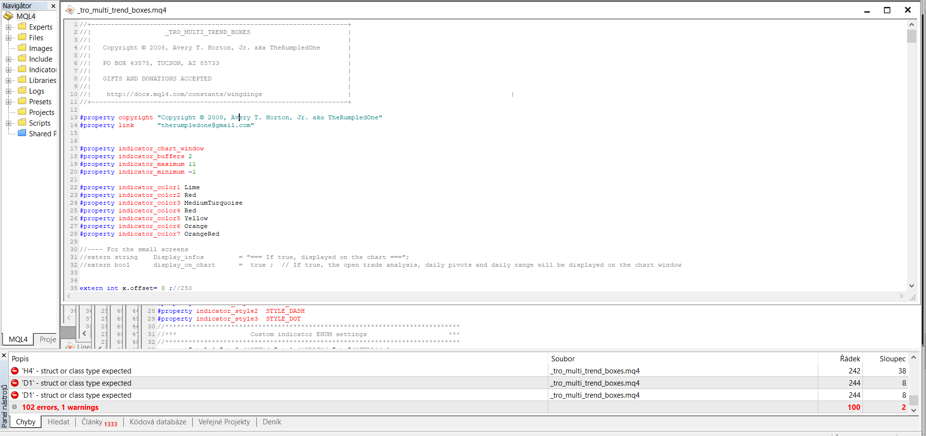 This is what I take from my metaeditor....abedalnasser wrote: Tue May 30, 2023 8:58 pm Its mtf trend indicator i download it from this fourm and used it , its helpful and good and there are no problem while use it in my chart , please check again and if you could repair anyproblem thats will be good and sorry because i did know nothing in programming also if you could make it like multipair will be fantastic i am sure