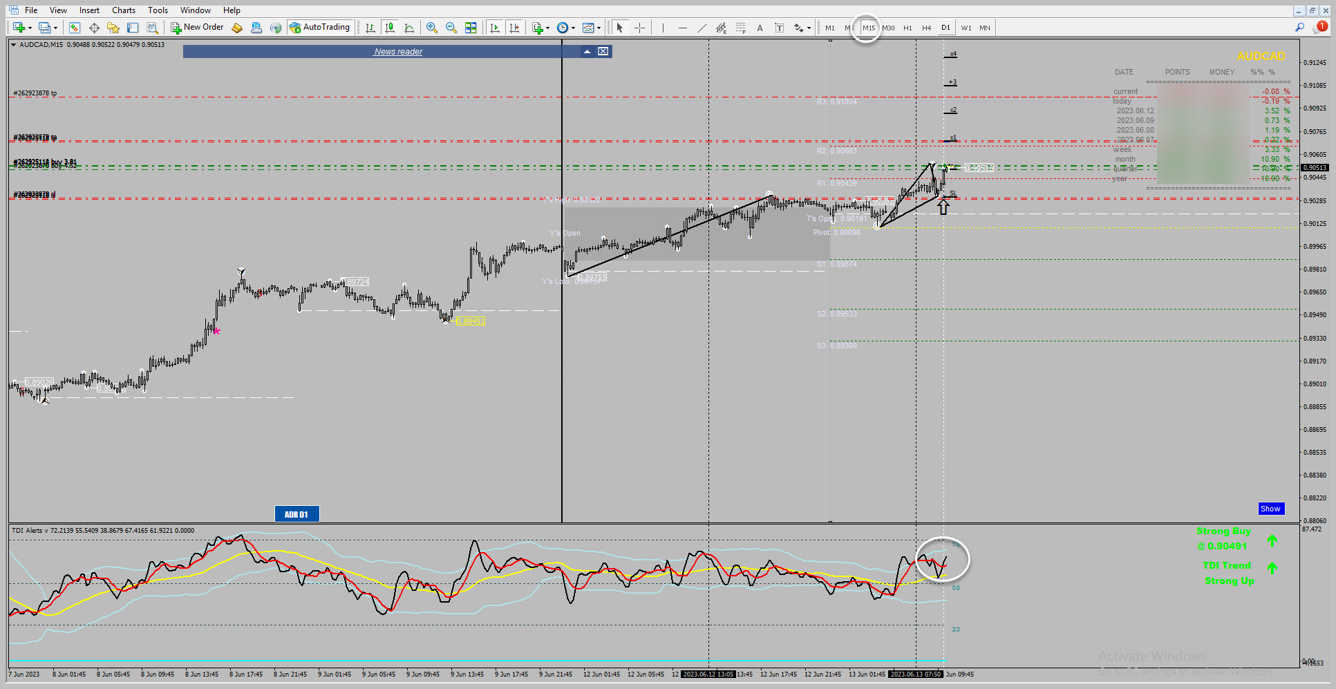 AUDCAD 13.06.2023 M15 :idea: For anyone who is in trading, to make an informed decision, consider studying the current market conditions, analyzing price patterns, using technical indicators, and staying updated with relevant news that might impact the pair. Additionally, risk management strategies, such as setting stop-loss and take-profit levels, are crucial to protect your capital.