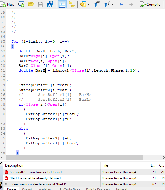 double BarL = iSmooth(Low[i]-Open[i] ,Length,Phase,i,10);