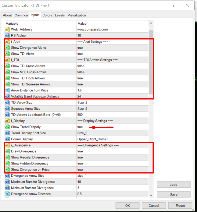 Shark Fin (TDI Hook arrows), TDI cross arrows, MBL cross arrows, TDI Squeeze arrows & Regular / Hidden Divergences.