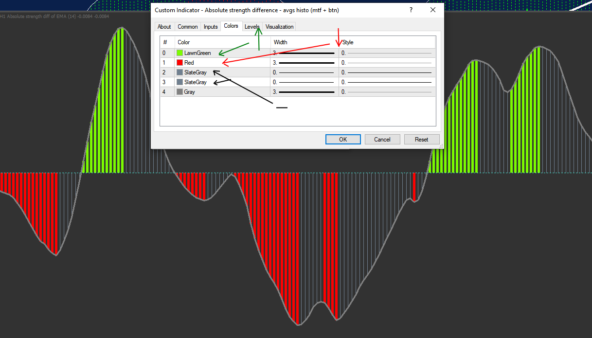 1- Absolute strength difference - avgs histo (mtf + btn)