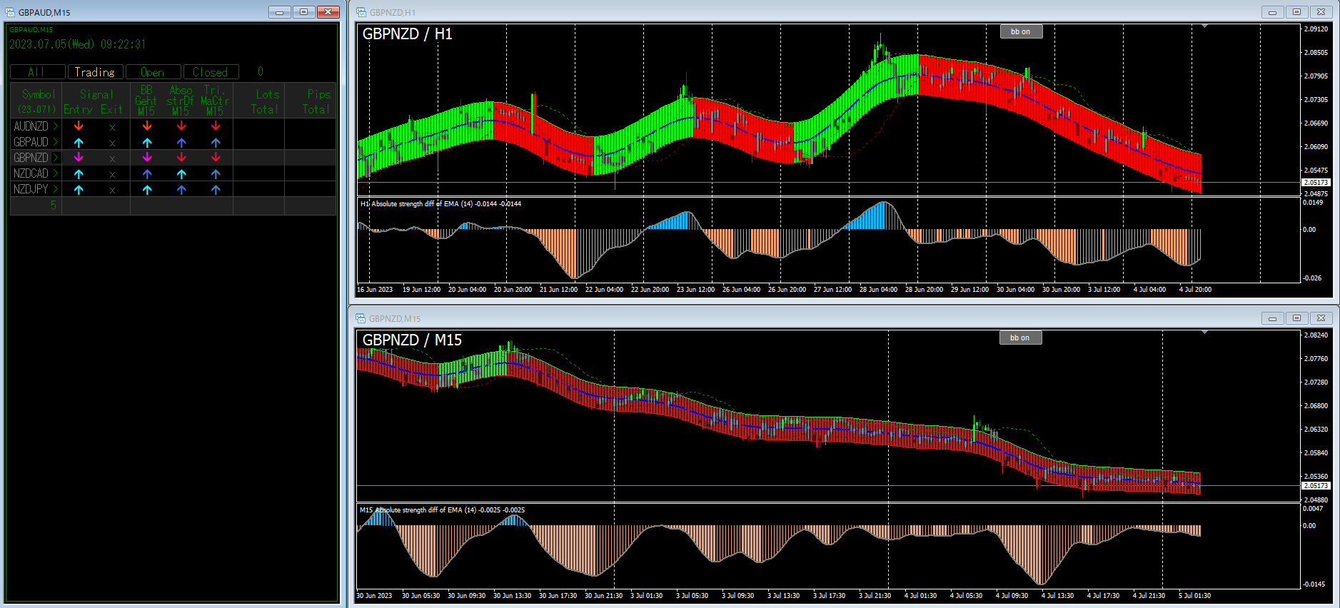 1- Absolute strength difference - avgs histo (mtf + btn)