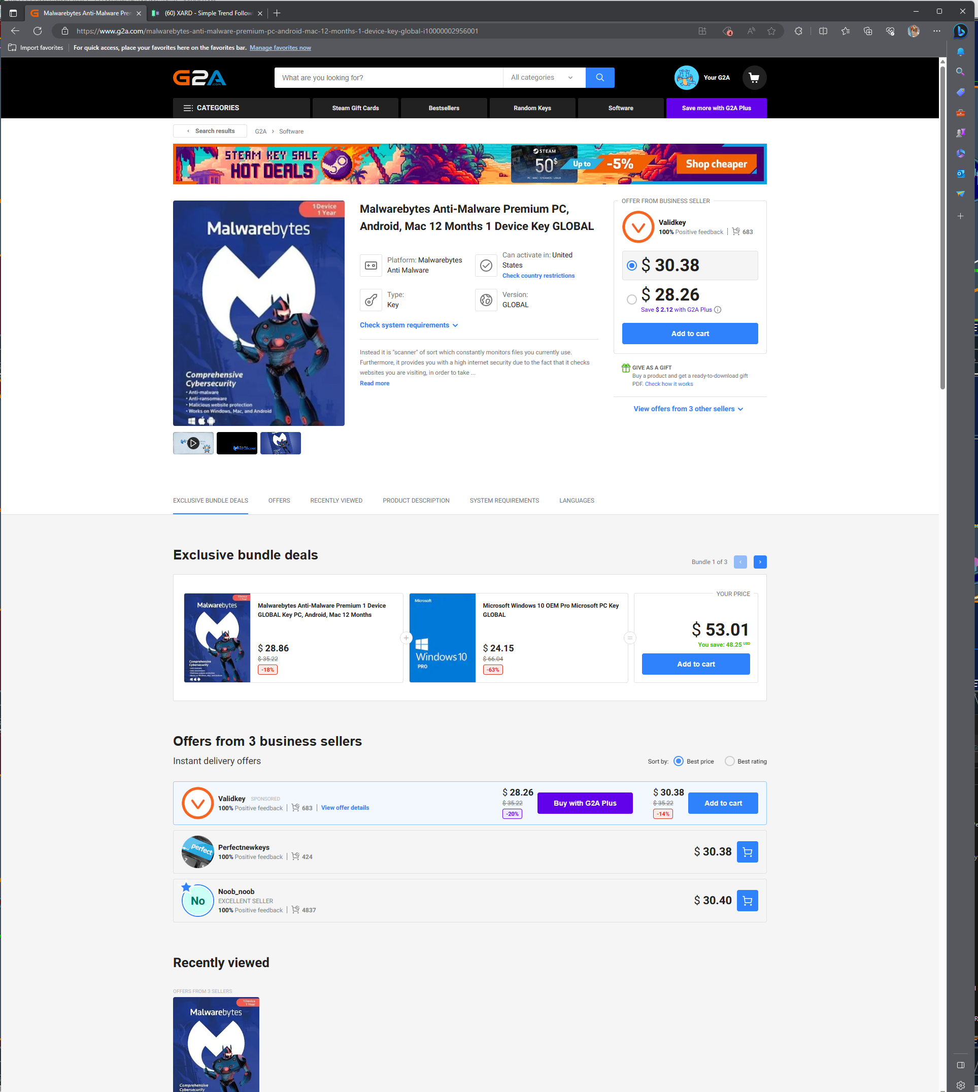 If you are using the free version of Malwarebytes and want a key for the full premium service, simply go to www,G2A.com and type Malwarebytes in the search box.