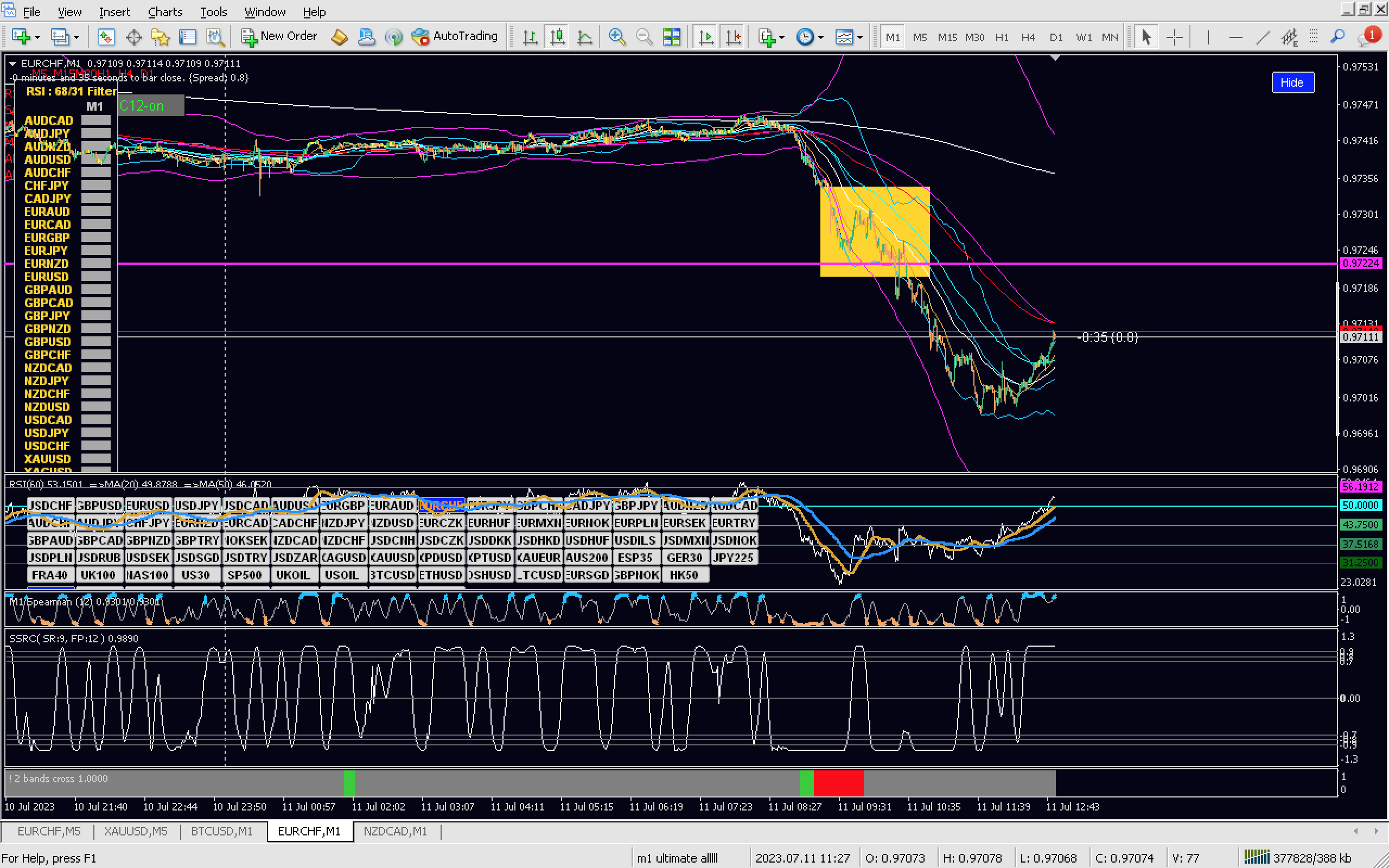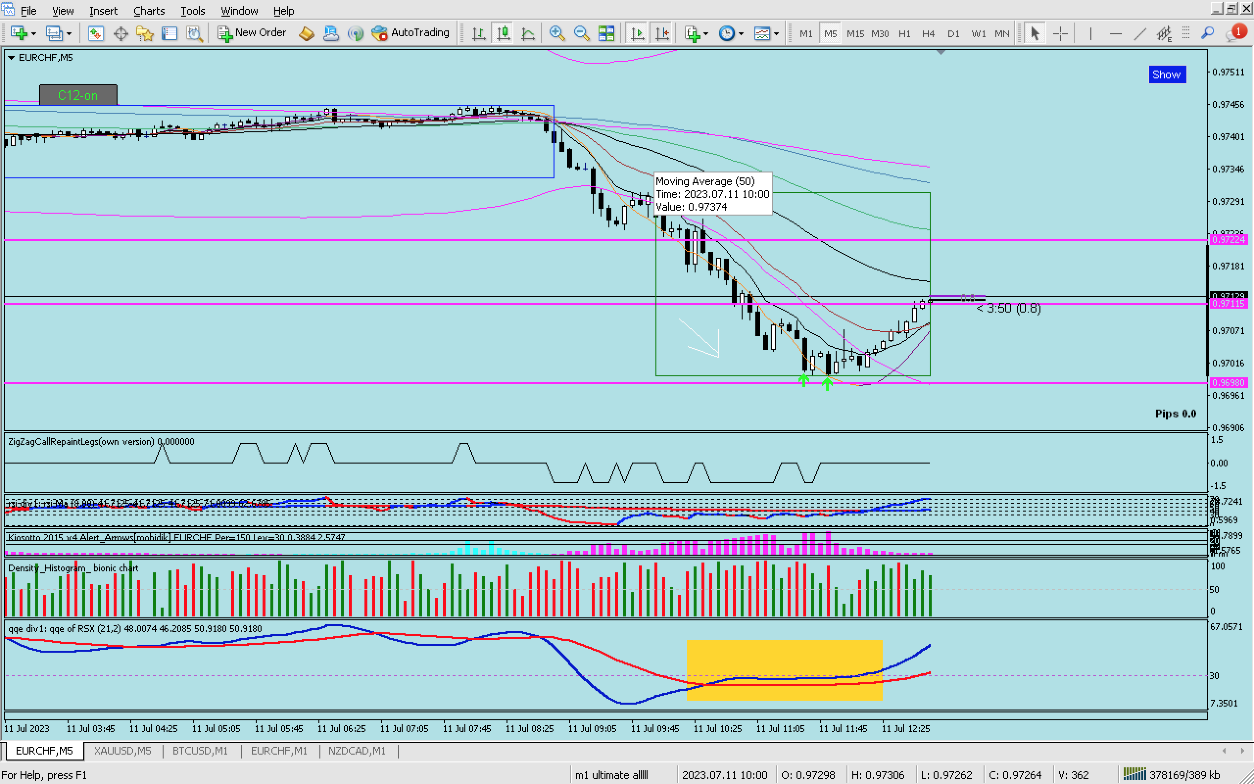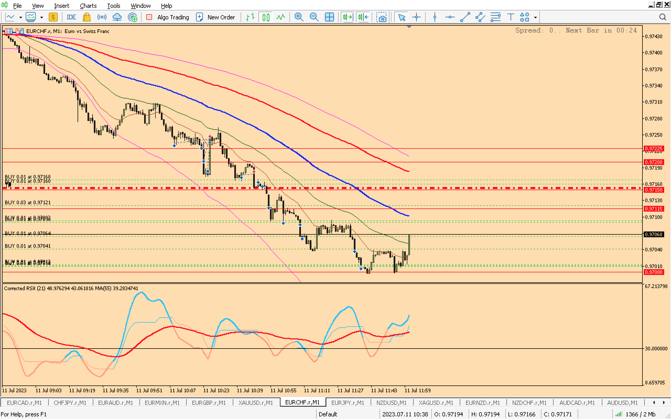 And I should stop with first trades, as ema 50 reached, but no I waited and start opening positions at my preferred zones, lucky micro lots ,in the past happen that price continue more and more,so this trade is very bad does not matter even if I closed in profit....Second thing is when I saw shape of rsx with ema and price continue down this is great confirmation that price will reach ema 50 5m tf so I held positions....Anyway,not satisfied ,reward is great who stay in trade, but not pin pointed entry....