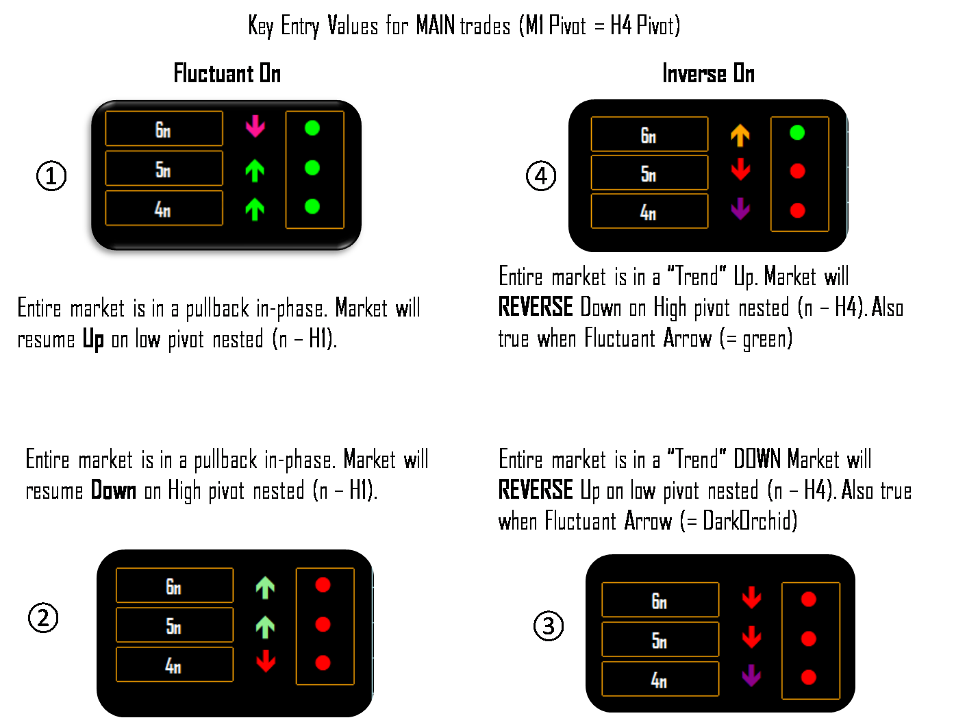 How is any of that complex? In what we have below we are saying when you see a pivot low or high (with your own eyes) in H4 and signs change as below trade and follow development with yours and the Screenface. How does that spell complexity ------------------> incredulity, may be but NOT complexity.