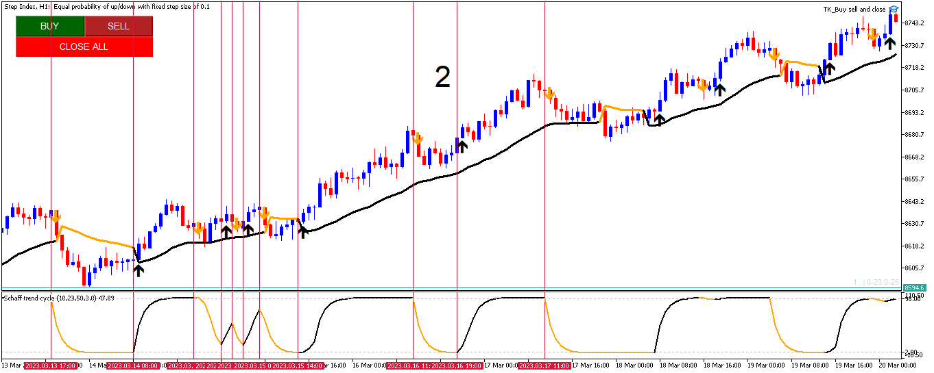 Mrtools, thank you very much for all the sacrifices you make to help us. otherwise the result is superb only I would like you to be able to adjust something. I suck at coding, which is why I have trouble explaining myself, otherwise I'll send you two images to help you understand. on the image with annotation 1, this is how I would like the arrows to come out with the alert. on the image with annotation 2, this is what you have just coded, only I notice that on what you have just coded there is a delay on the arrows. somehow I would like the arrow to come out on the first candle that changes the trend. on the image with annotation 2, I drew vertical lines on candles where I would have liked the arrows to come out. the two images are the same time slot, same period. only that in the image with annotation 2 there is a delay of one candle. if so you can review that for me and the alerts too. thank you very much