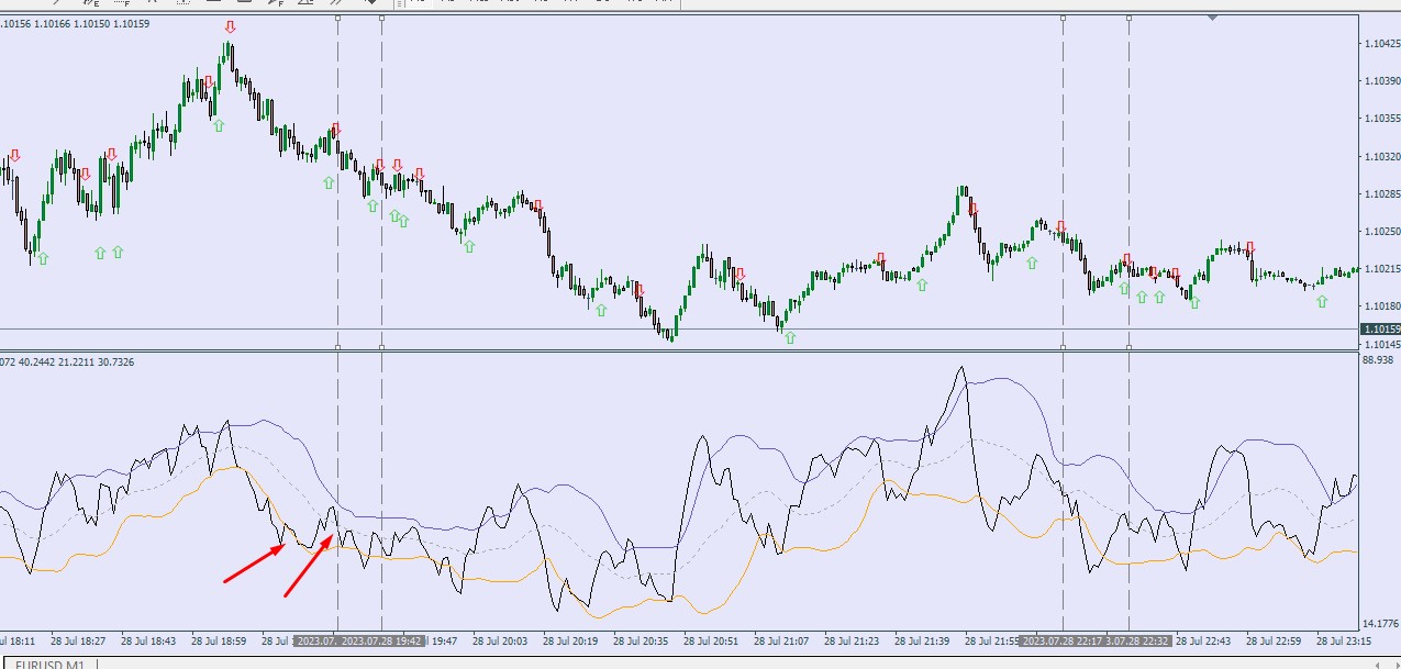 it is better to filter arrows based on the line after cross down bb bottom channel and then crosses down at MA line without touch upper bb channel