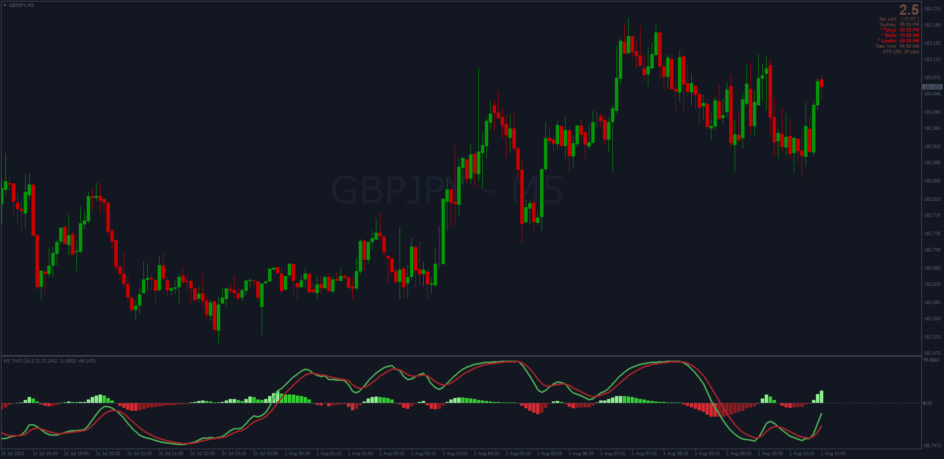 Thanks to the efforts of member dmnik & Mrtools, a TradingView code called the TMO "True Momentum Oscillator" is now available for MT4. Although Mrtools's version looks different, the signals are identical. Try this 1 & 5m timeframe indicator, here: viewtopic.php?p=1295520005#p1295520005