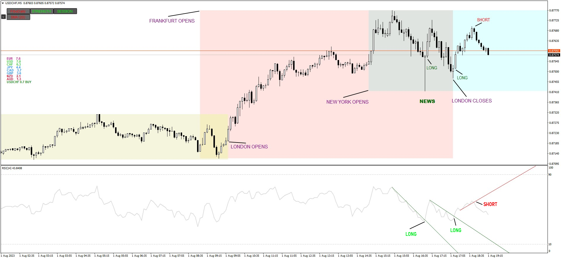 RSI(14) after the news on August 1, 2023.