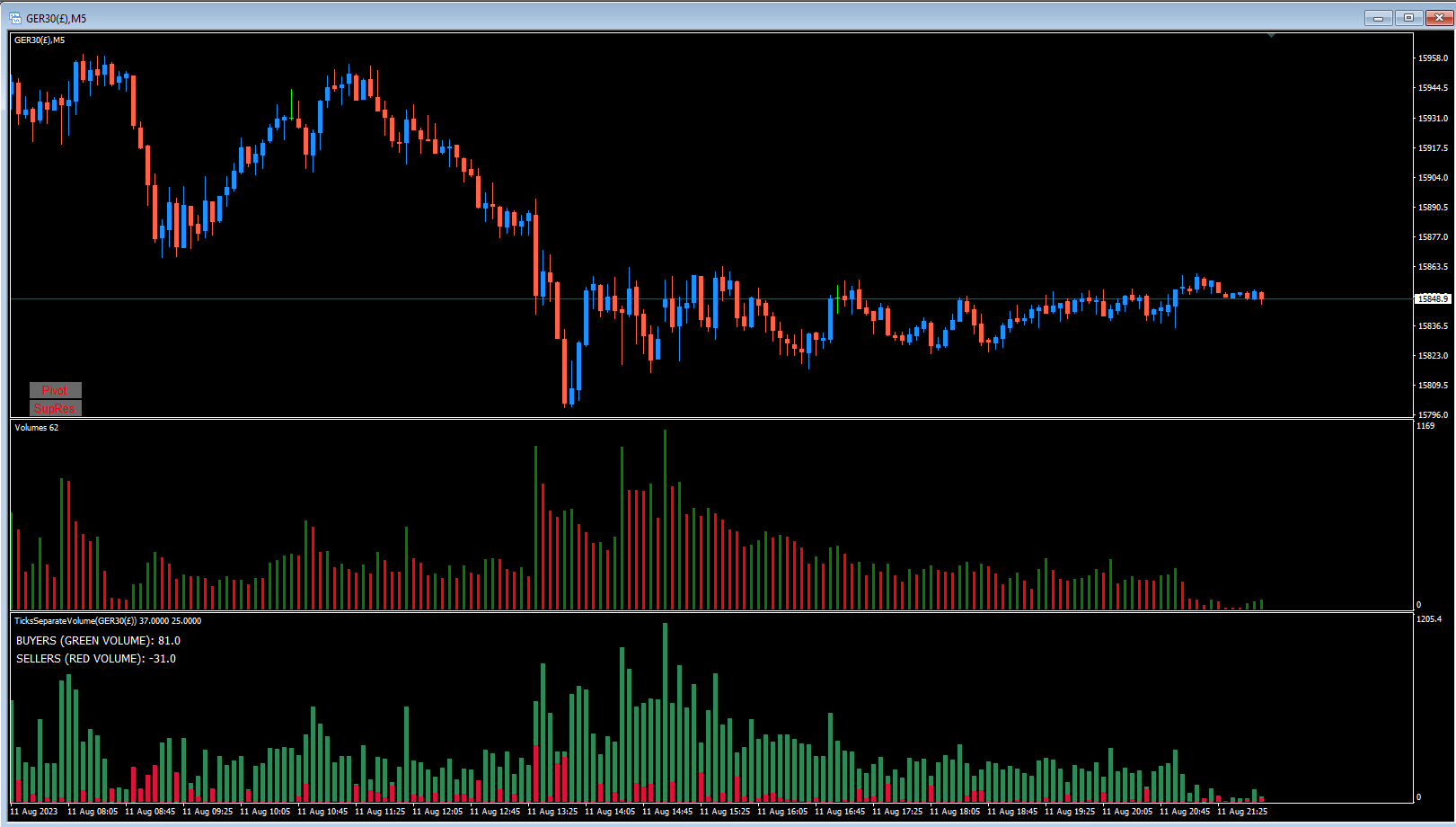 There must be a problem either with your default vol indicator or with your broker feed, it's impossible that every bar has the same vol number. Also, as Sal said, the buyer/seller vol indicator not the same as your pic when applied to charts (see below).alpha24 wrote: Sat Aug 12, 2023 2:12 am Sal Sir,