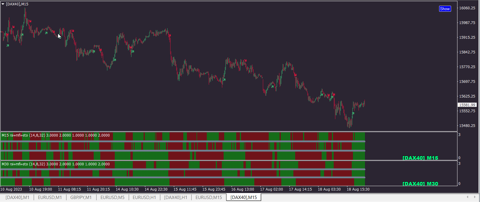 Upper histo is MFI, middle RSI and lower histo is stochastic...