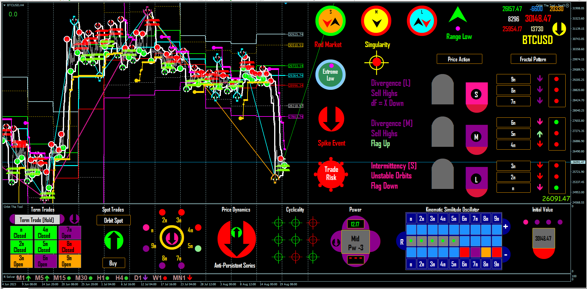 However, There are only 3 possibilities (Orbit or no Orbit), a) price rises from the current low and displaces the crown M (5) onscreen or price rises to a lower High on an Aqua diagonal to return lower in a Spike Event, i.e. new lower low. Or price sustains in the FLE to continue immediately lower (though the FLE appears to have formed and from what immediate indications are showing, an immediate continuation is not on the cards, so looks like range play for now).